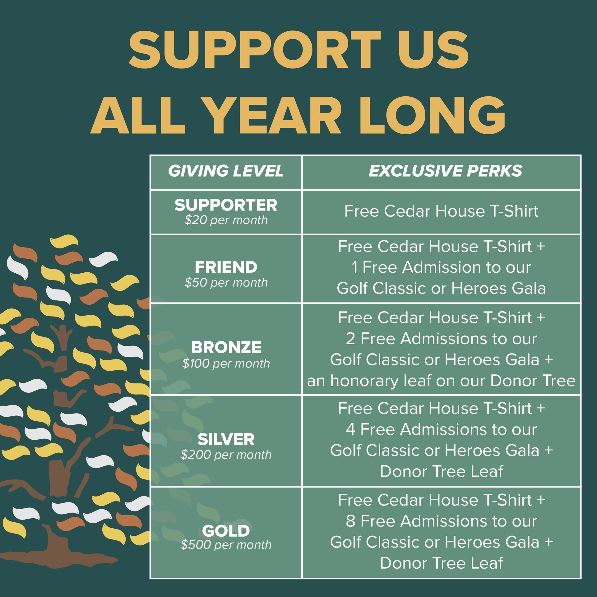 Cedar House is proud to help our clients make essential, lifesaving changes. We invite you to be a part of changing lives now and for future generations. By partnering with us, you are providing avenues to sustained recovery and success in life. Our community needs us more than ever, so join us as we impact lives and change the world. Our Rooted In Recovery Campaign pushes us forward to grow to great heights. Your gift will: